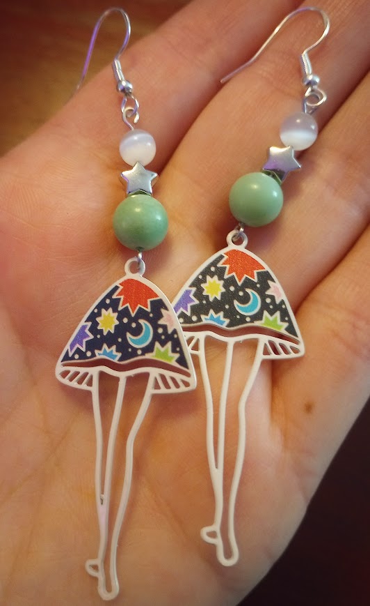 Limited series! Cosmic leggy mushroom earrings with real healing crystals.