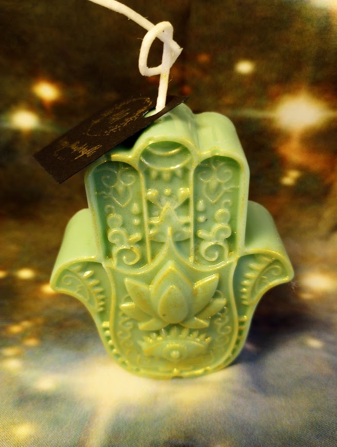 4 ounce organic soy wax Hamsa candle with organic essential oils.