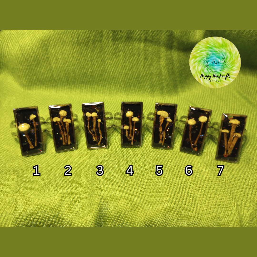 Real mushrooms in UV resin. Adjustable stainless steel. Choose from different designs.