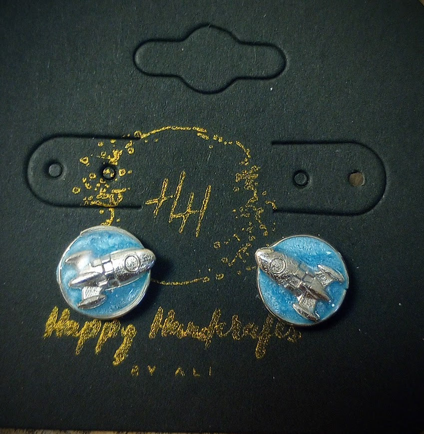 UV resin blue UV glow rocket stud earrings. 10mm circle.